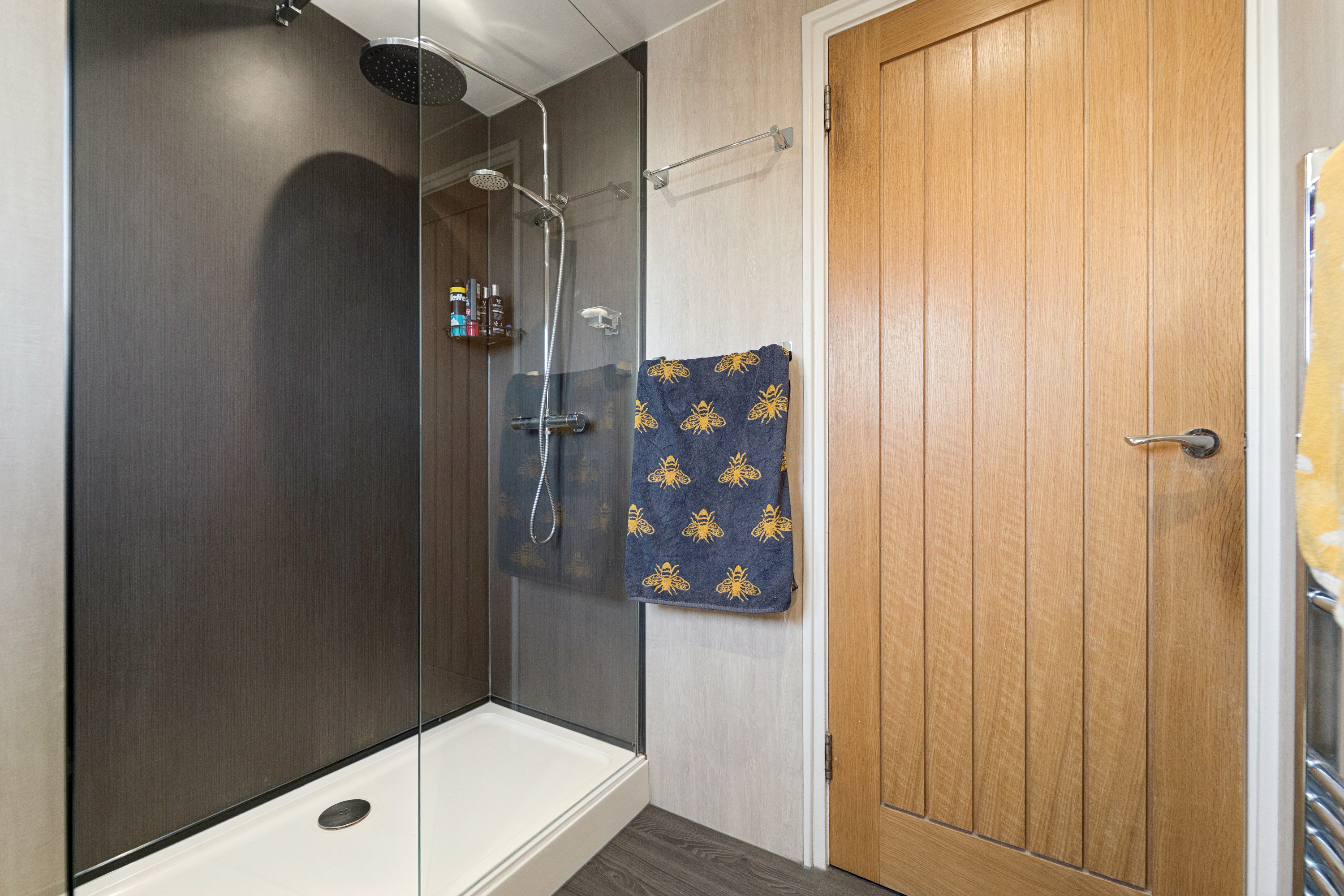 The home offers bright and well-designed interiors, including a spacious living room and a modern kitchen/dining room with doors to the rear garden. Upstairs features a generous main bedroom with built-in storage, two further bedrooms and a high-quality modern shower room. Outside, the property has a multi-car driveway, single garage, mature front garden and a large enclosed rear garden with a decked terrace and lawn. A floored attic currently used as a bedroom provides valuable extra space.