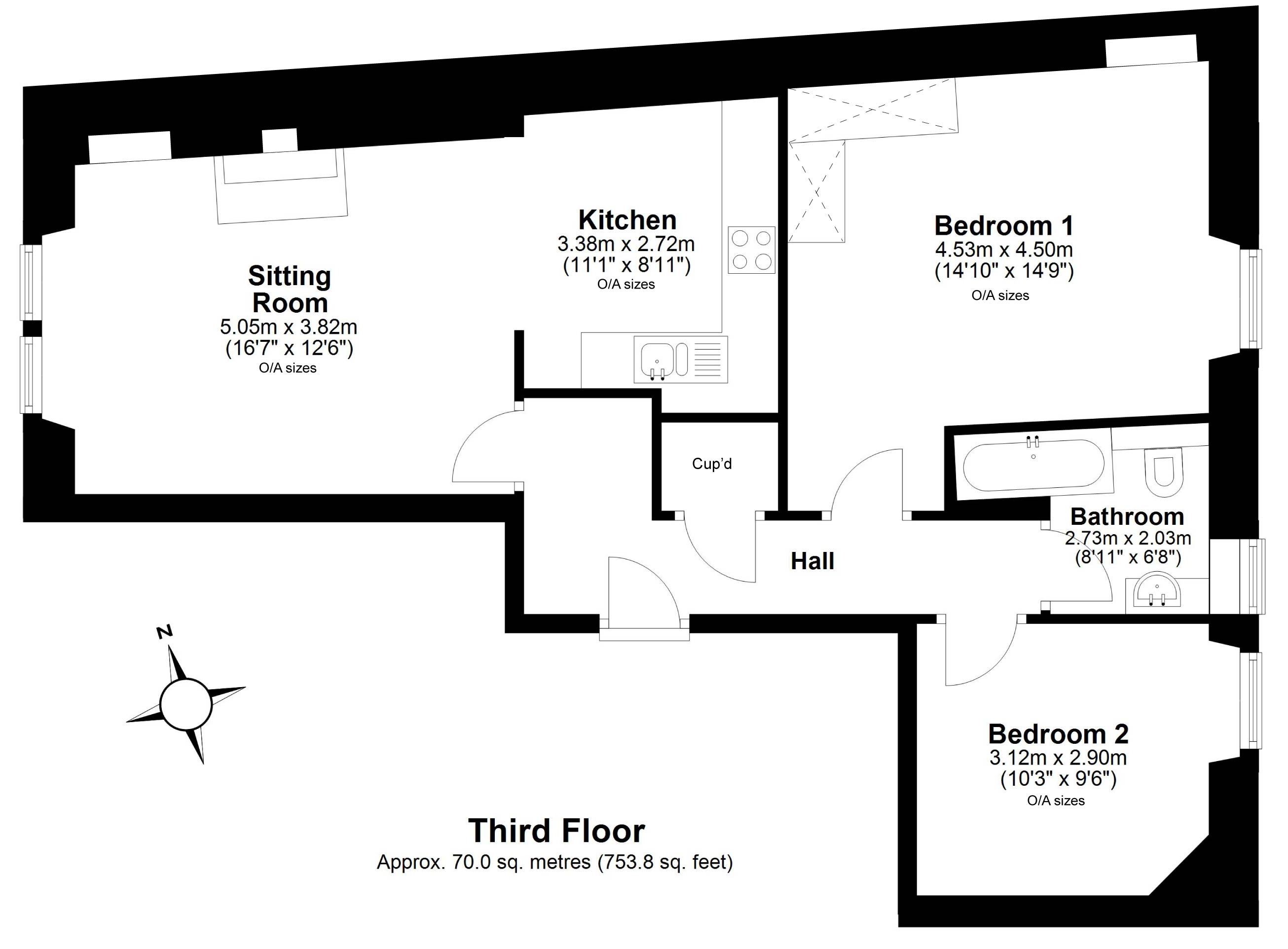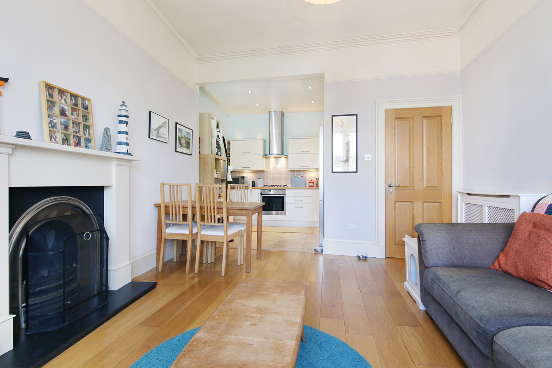 On the Third (top) floor, step into a welcoming hallway that leads to the heart of the home: a fabulous, open-plan reception space perfect formodern living. The chic gloss kitchen, tucked away at the rear, boasts integrated appliances, making cooking a joy. Adjacent, the dining area flows seamlessly into the sitting room, complete with a feature fireplace and a gas living flame fire, and offers an open outlook. Two tranquil bedrooms at the rear share a stylish three-piece bathroom finished with painted T&G panelling and a convenient over-bathshower.