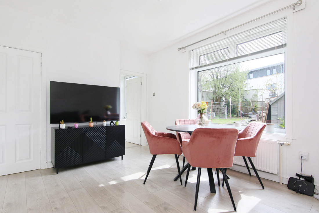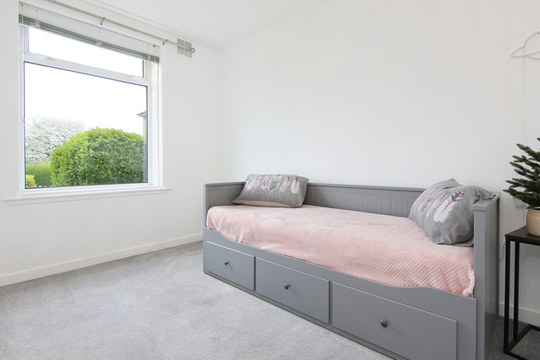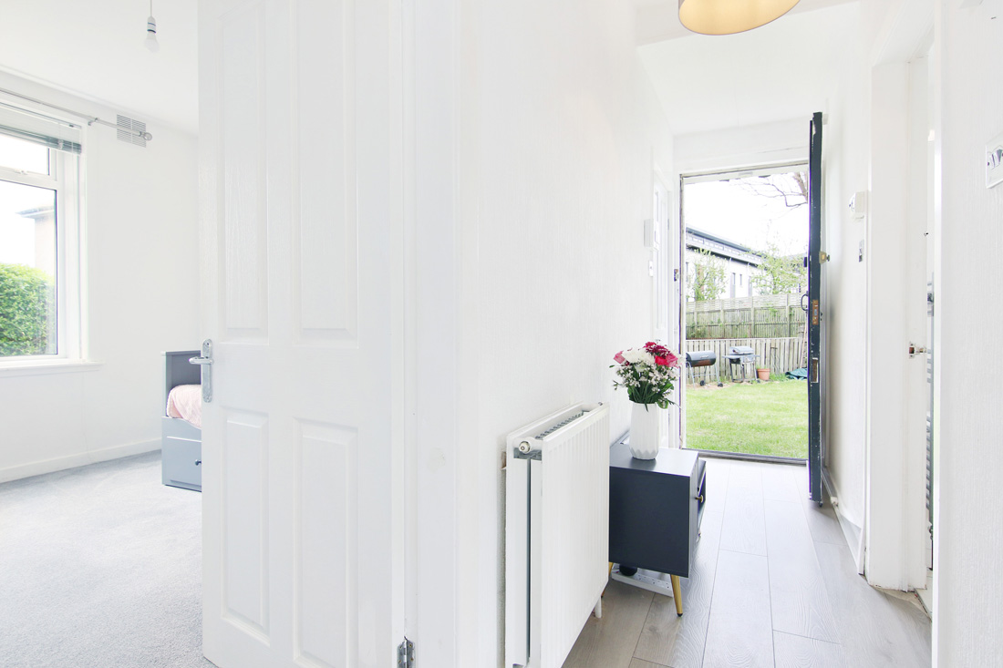 Set around a small ‘green’ and opposite East Pilton Park, this appealing ground floor flat, enjoys a tranquil open aspect in popular residential East Pilton. The property enjoys a south facing aspect to the rear and has a private front garden and back garden plot, along with shared drying green.