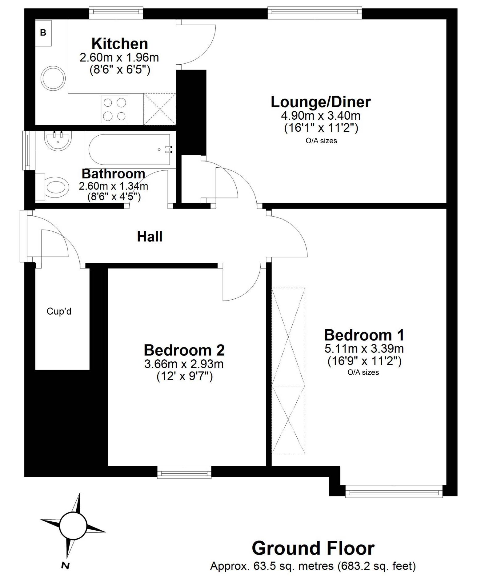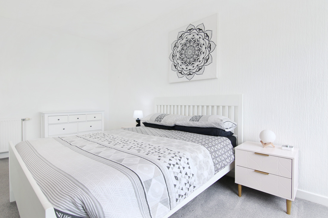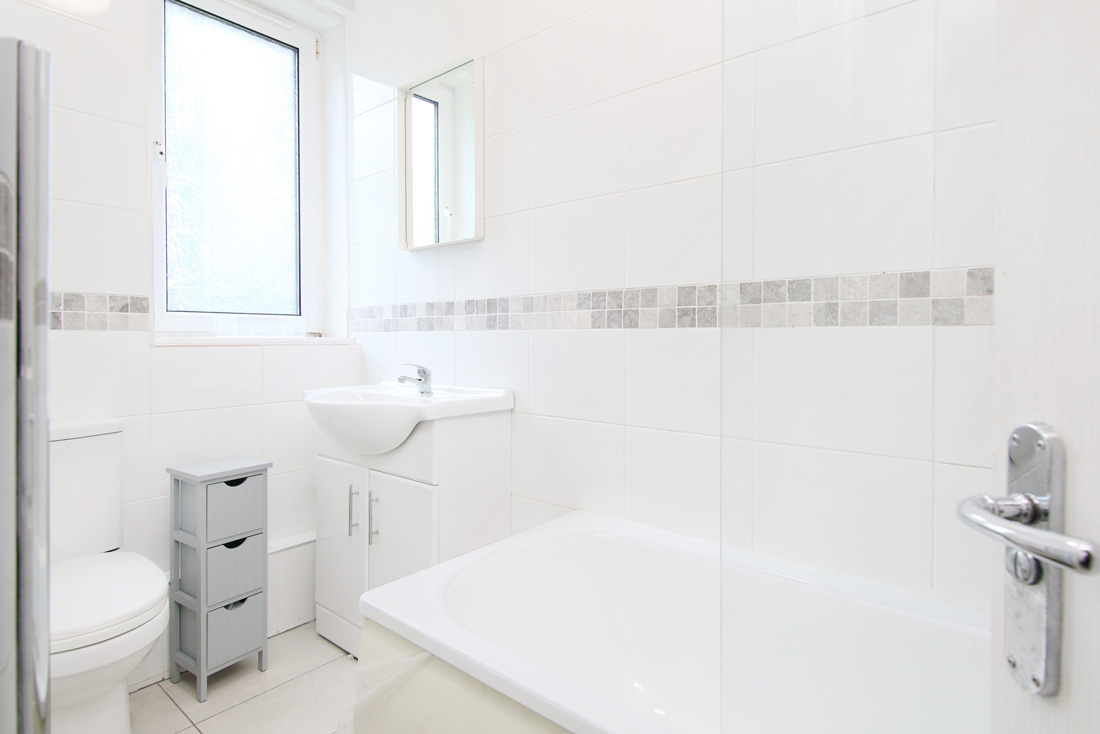 Returning to the hall, the property boasts two excellent double bedrooms. Completing the accommodation is the light and airy three-piece bathroom, which is immaculately tiled in neutral tones, and comprises a shower-over-bath with a glass shower screen.