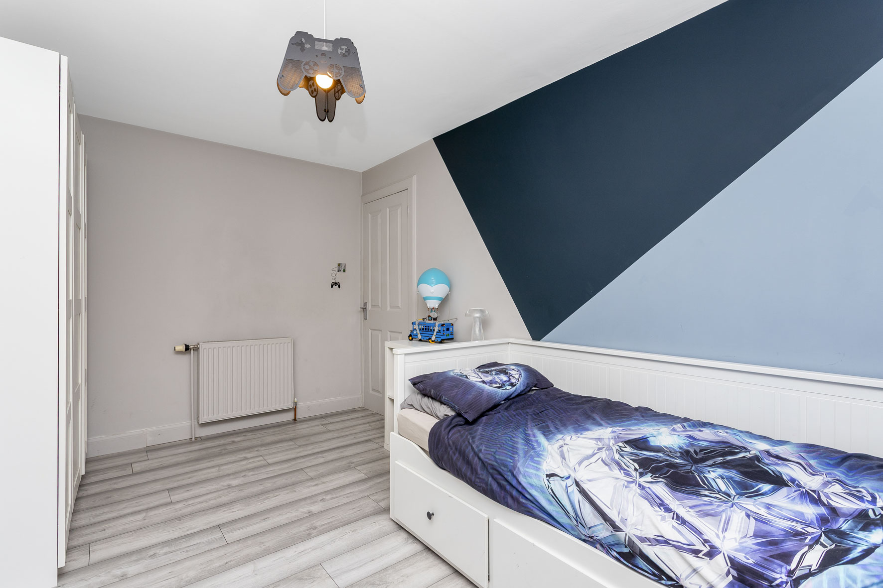 The two double bedrooms are both elevated by light décor and the low maintenance flooring found in other parts of the home. The principal bedroom has the added advantage of a south-westfacing aspect and builtin storage. The second bedroom, with a tasteful accent wall, is just as spacious as the principal, providing homeowners with plenty of floorspace for bedside furnishings. Alternatively, it can be used creatively to suit your lifestyle, whether as a gaming room, an additional reception area, an office, or a nursery.