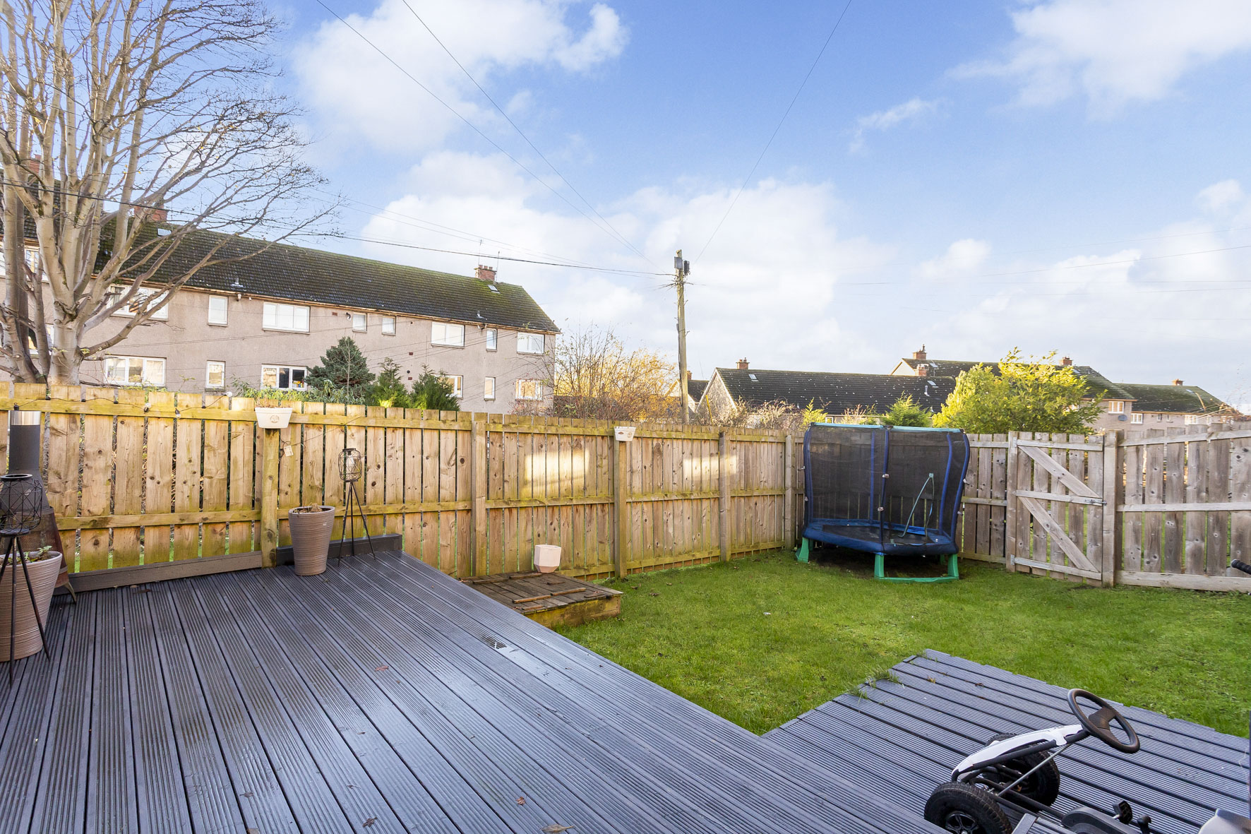 To the front, the property boasts a private double driveway, whilst to the southwest-facing rear it has a private garden that is fully enclosed by a high fence. The garden features a generous decked area to comfortably relax and dine in the sun, and it has a neat stretch of lawn as well, making it ideal for a wide range of buyers, including couples, families, professionals, and downsizers alike.