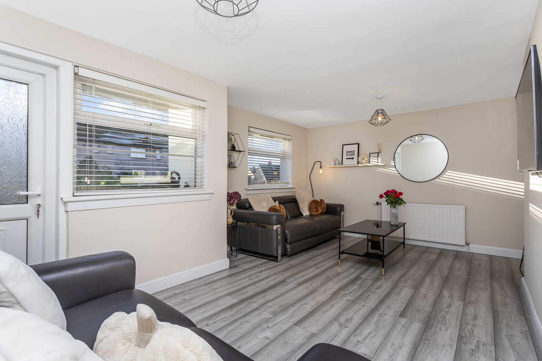 This two-bedroom ground-floor flat is a bright and spacious home that has been lovingly decorated and completed to a high standard. It boasts a modern kitchen and bathroom, as well as the desirable features of private parking for two cars and a fully-enclosed garden with a southwest-facing aspect. Situated in Clermiston, it has a popular location too, which offers easy access to amenities, schools, and transport links. Being approximately a 15-minute drive from Edinburgh’s West End and the city centre, it is a highly desirable setting, especially amongst families, professionals, and firsttime buyers alike.