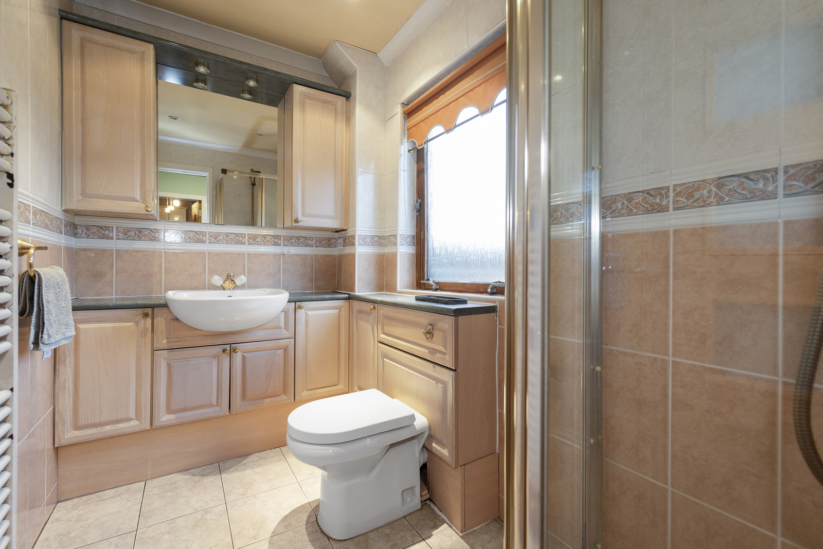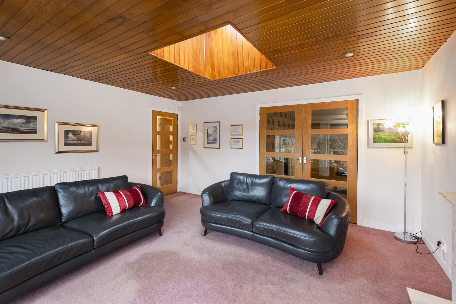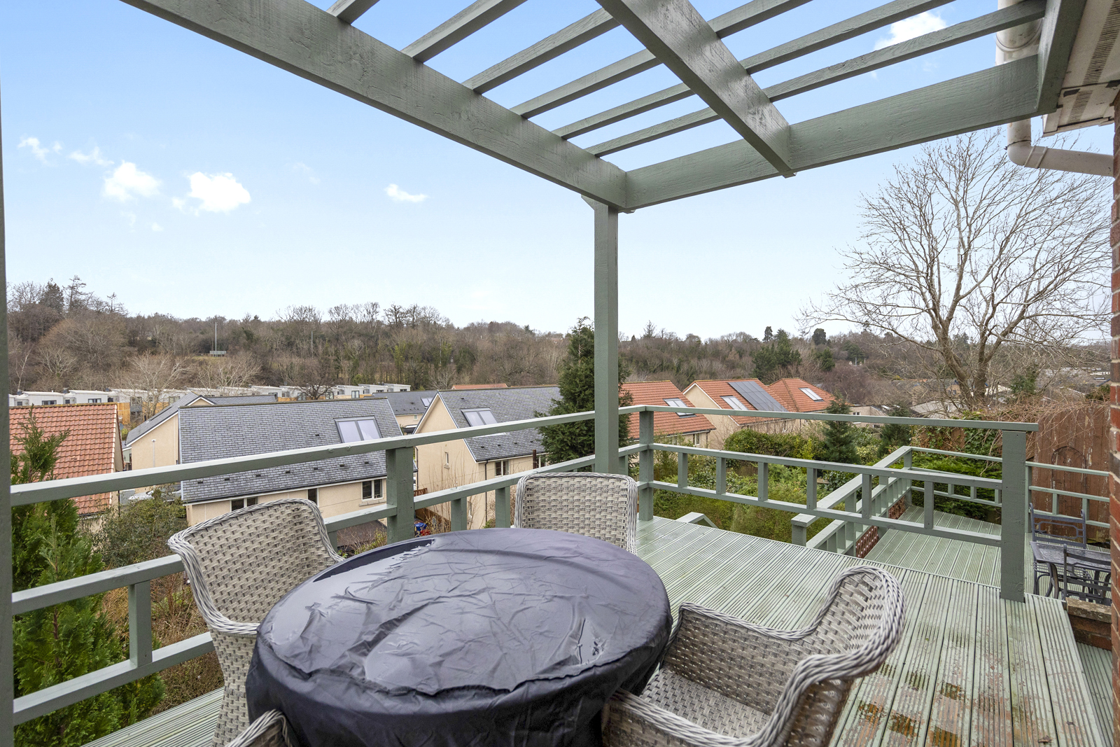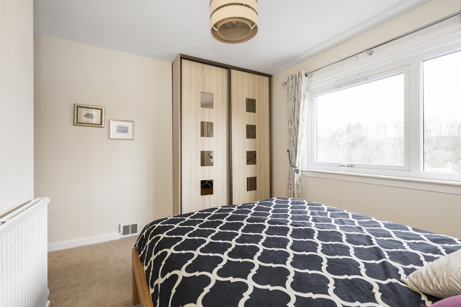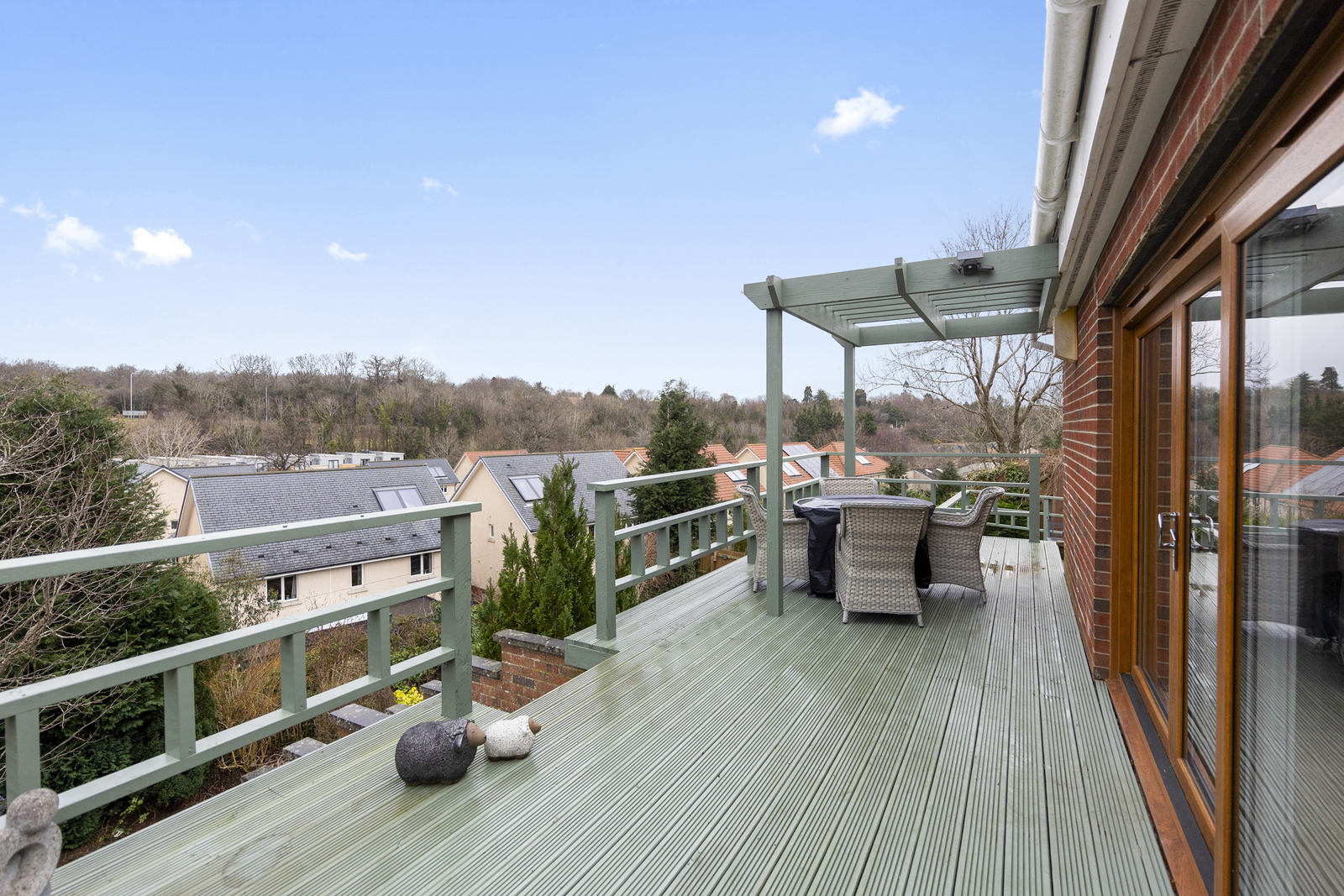 Externally, there is a large driveway which can host two cars, a garage with up and over door, access on both sides of the house, front garden which is fully slabbed and low maintenance. The side garden is laid with chipped stones and is used as a drying area currently. Immediately to the rear of the family room is a lovely decked area, providing uninterrupted views over the park and woodland below. This split level deck is the perfect spot for alfresco dining or entertaining and leads to the garden which sits below. Two separate sets of steps give access to the vast garden ground at the rear, well presented with lawn, shrubs, bushes and small tress all impressively maintained.